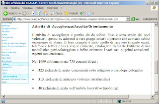 Torniamo alla pagina con i dati ufficiali dell’anno 1999. Inspiegabilmente, queste 778 richieste dei primi 6 mesi di vita del CeSAP sono superiori a quelle di tutti i 12 mesi del 2000 (totale 454) e del 2001 (totale 626). Impossibile non considerarli numeri scritti a caso per vantare un immaginario successo. Anche la data di inserimento delle statistiche rende poco credibile il resoconto del 1999. Mentre per gli anni 2000, 2001 e 2002 vengono inseriti sul finire dell’anno in oggetto, per il 1999 ci si ricorda di pubblicare i dati sei anni dopo. Una strana anomalia: